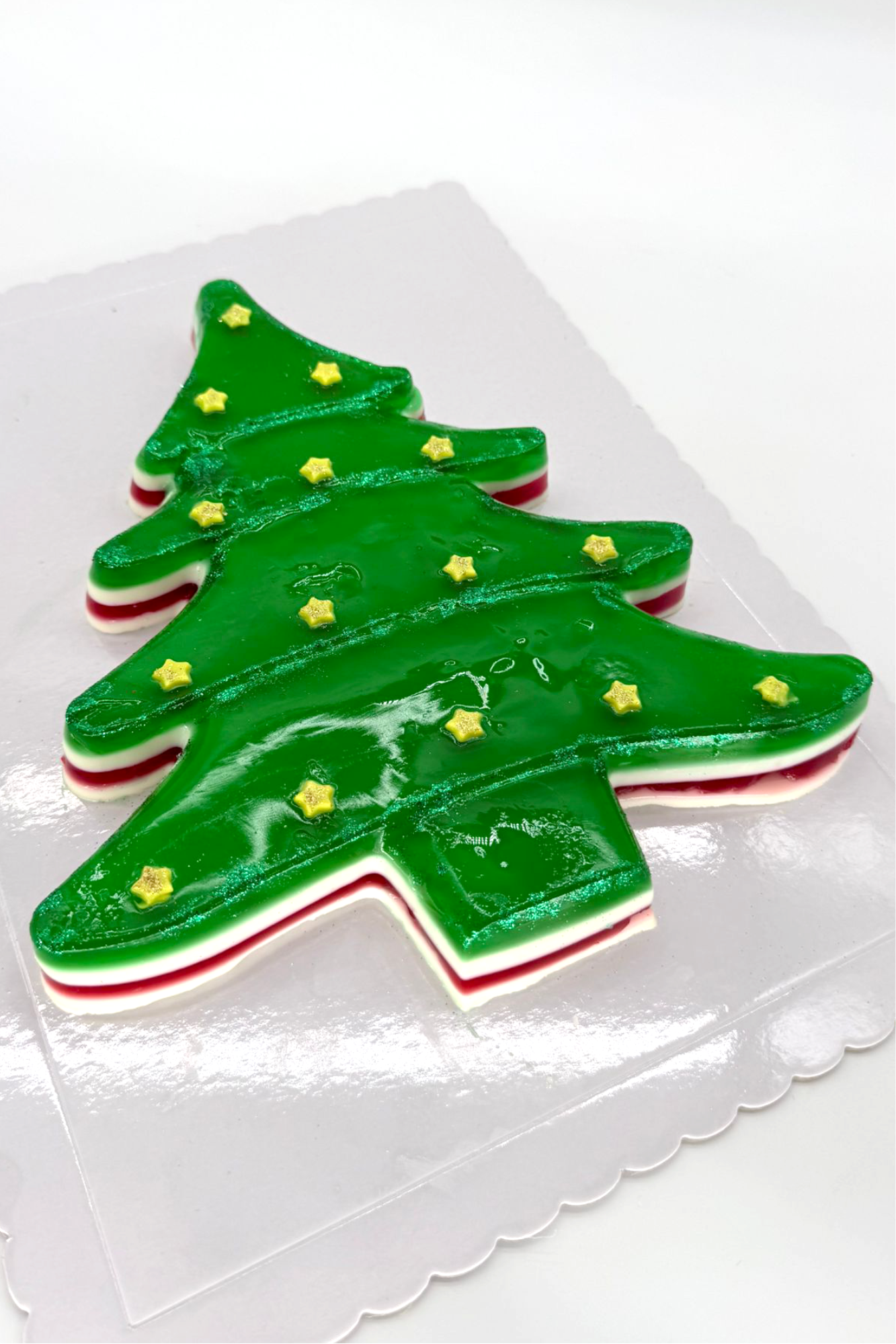 Gelatinas artesanales en capas y formatos navideños. Colores vivos y sabor suave.
