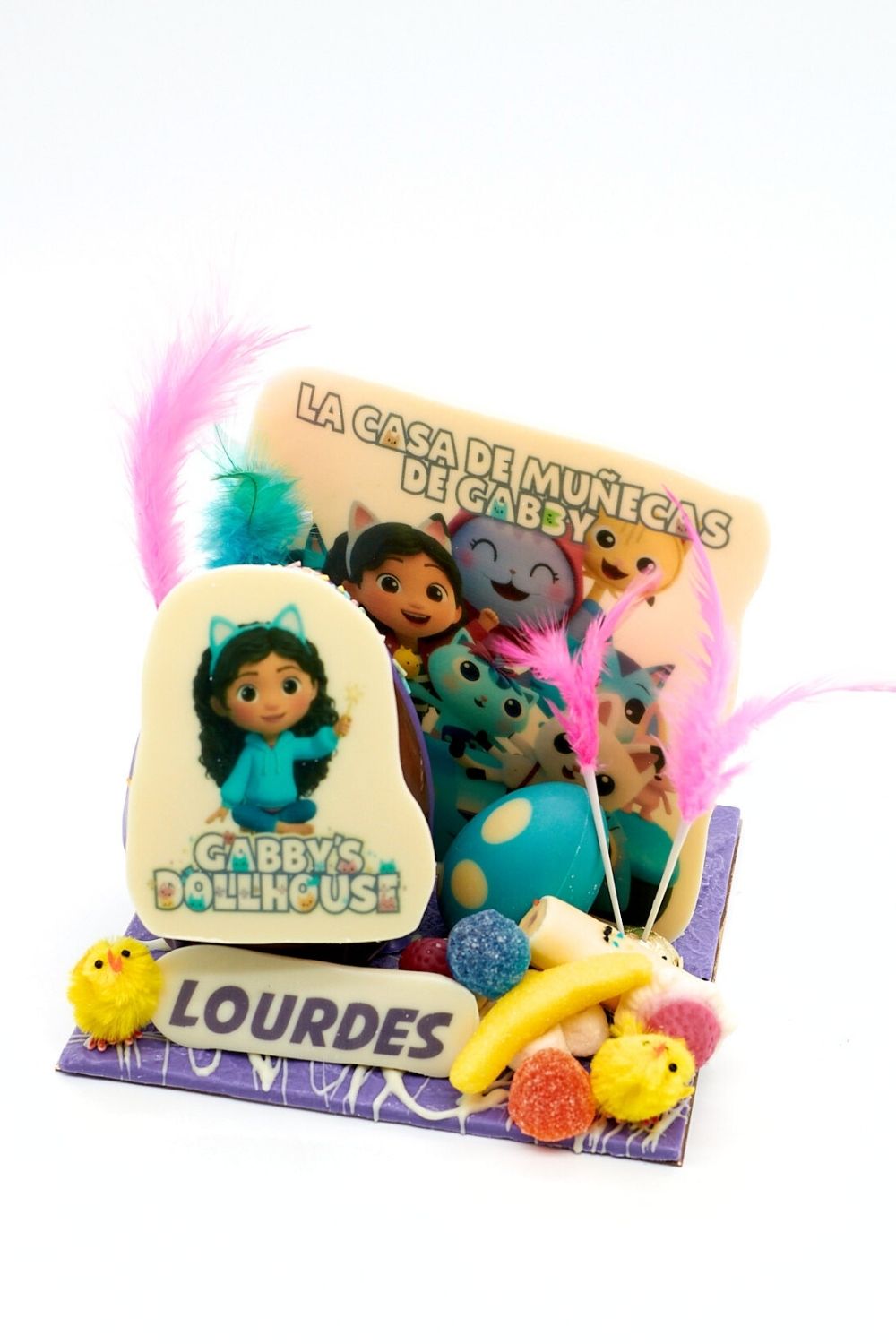 🔨 Huevo de chocolate: Incluye un huevo de chocolate premium (blanco o de leche) con el logo de "La Casa de Gabby"